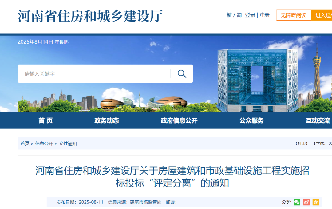 - 住建廳:全省政府投資工程實(shí)施“評定分離”,即日起實(shí)施!